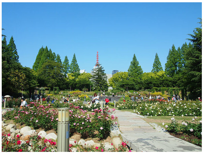 大阪市内は公園(緑)が少ないと言われがちですが、西区はたくさんの公園があり中でも有名な靭公園があります。総面積約9.7ヘクタール、東西約800m、南北約150mと言われてもあまりピンと来ない広さですが大きい公園です。バラ園や、テニスコートがあり自然を感じることができ憩いの公園です。
